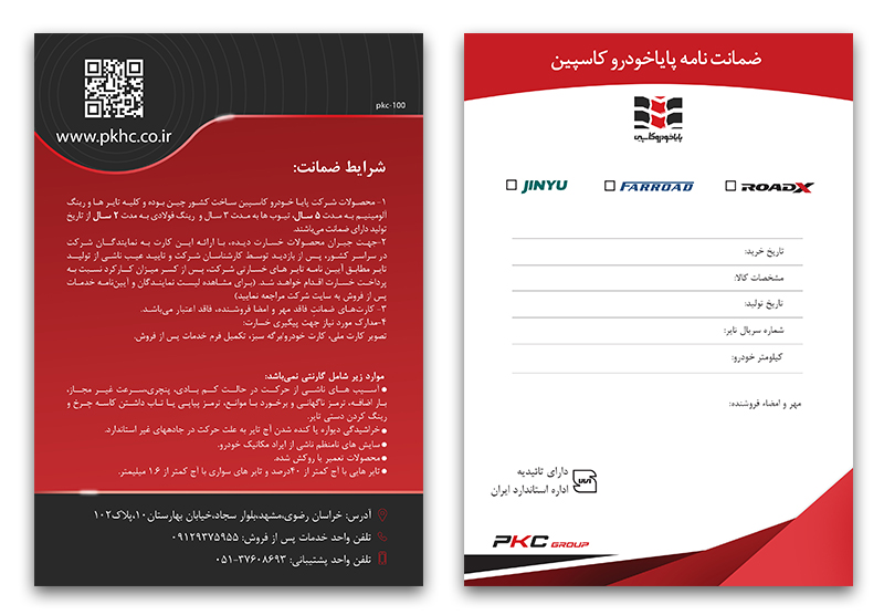 کارت ضمانت محصولات پایاخودرو کاسپین